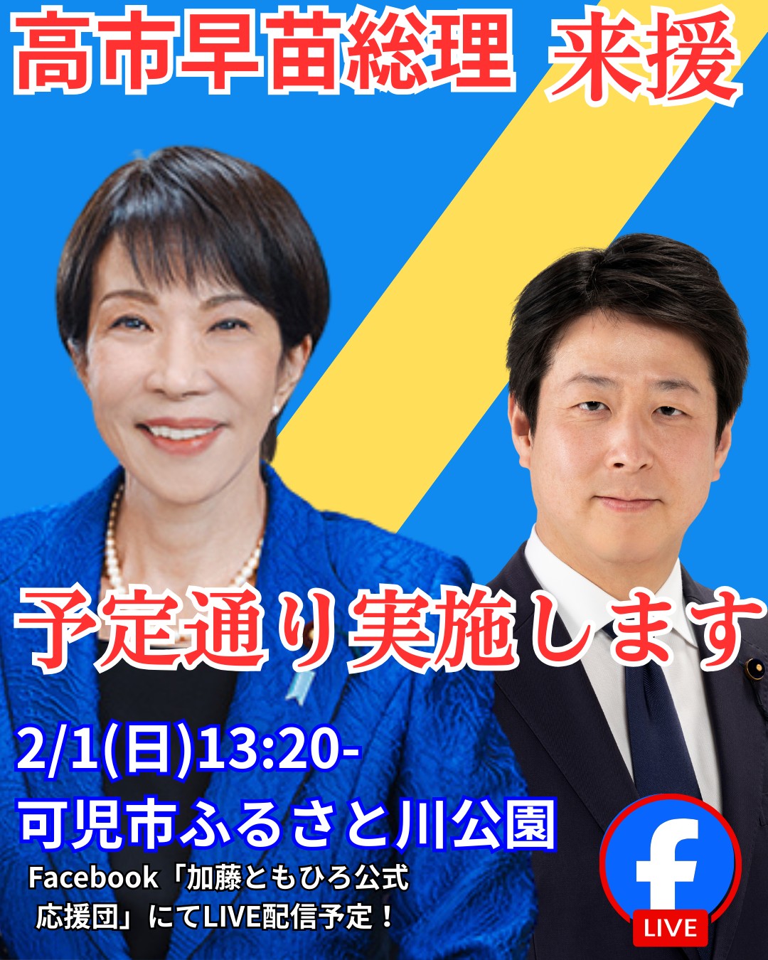 【2月1日(日)】高市早苗総理 岐阜可児市にて応援